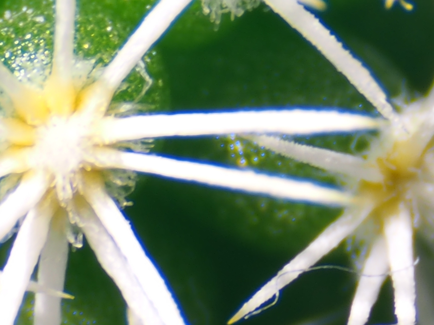 Other than that, the lens is surprisingly sharp considering its origin and construction. As far as I can tell, axial chromatic aberration dominates the image quality. For example, zooming in at the cactus photo from the start of the post:
