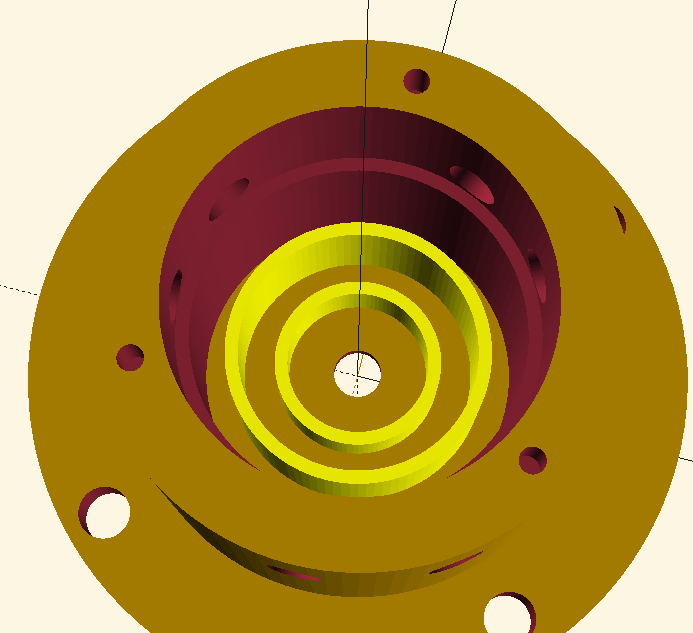 I modeled the lens as a multi-part 3D print in OpenSCAD. The design essentially consists of: